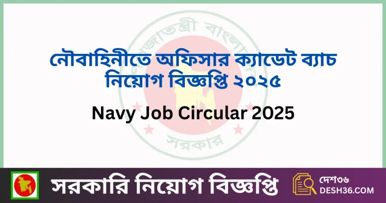 আবেদন শুরুর তারিখ: ০১ অক্টোবর ২০২৫, আবেদনের শেষ তারিখ: ১৬ নভেম্বর ২০২৫, শূন্যপদঃ ০১ টি চাকরির বিবরণ বাংলাদেশ নৌবাহিনীতে শূন্য...